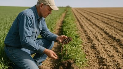 Crop Management2 Min Read Farming IndiaonJanuary 4, 2026 घर पर मिट्टी की सेहत कैसे जांचें: आसान तरीके मिट्टी की गुणवत्ता जानना हर किसान के लिए जरूरी है। इस लेख में घर पर मिट्टी की जांच के सरल तरीके बताए गए हैं। Discover More